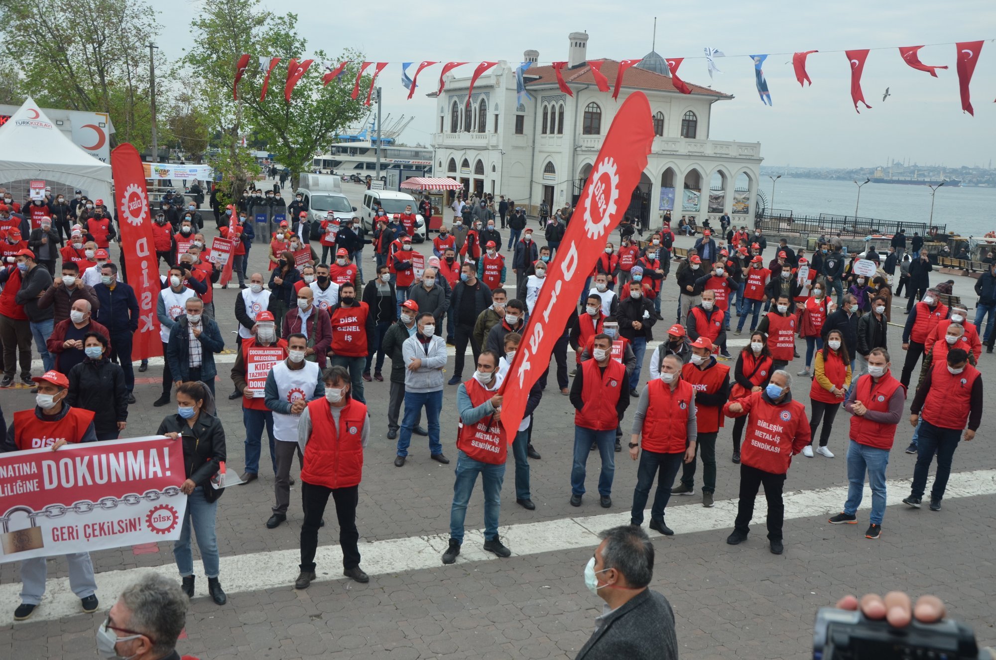 25 yaş altı ve 50 yaş üstü işçilerin kıdem tazminatı, ihbar tazminatı ve emeklilik hakkını gasp etmeye yönelik torba yasa tasarısına karşı işyerlerindeki eylemlerin ardından DİSK, “KIDEM TAZMİNATIMA, EMEKLİLİK HAKKIMA, ÇOCUKLARIMIN HAKLARINA DOKUNMA!”, “TORBA YASA GERİ ÇEKİLSİN!” sloganlarıyla alanlara çıktı.