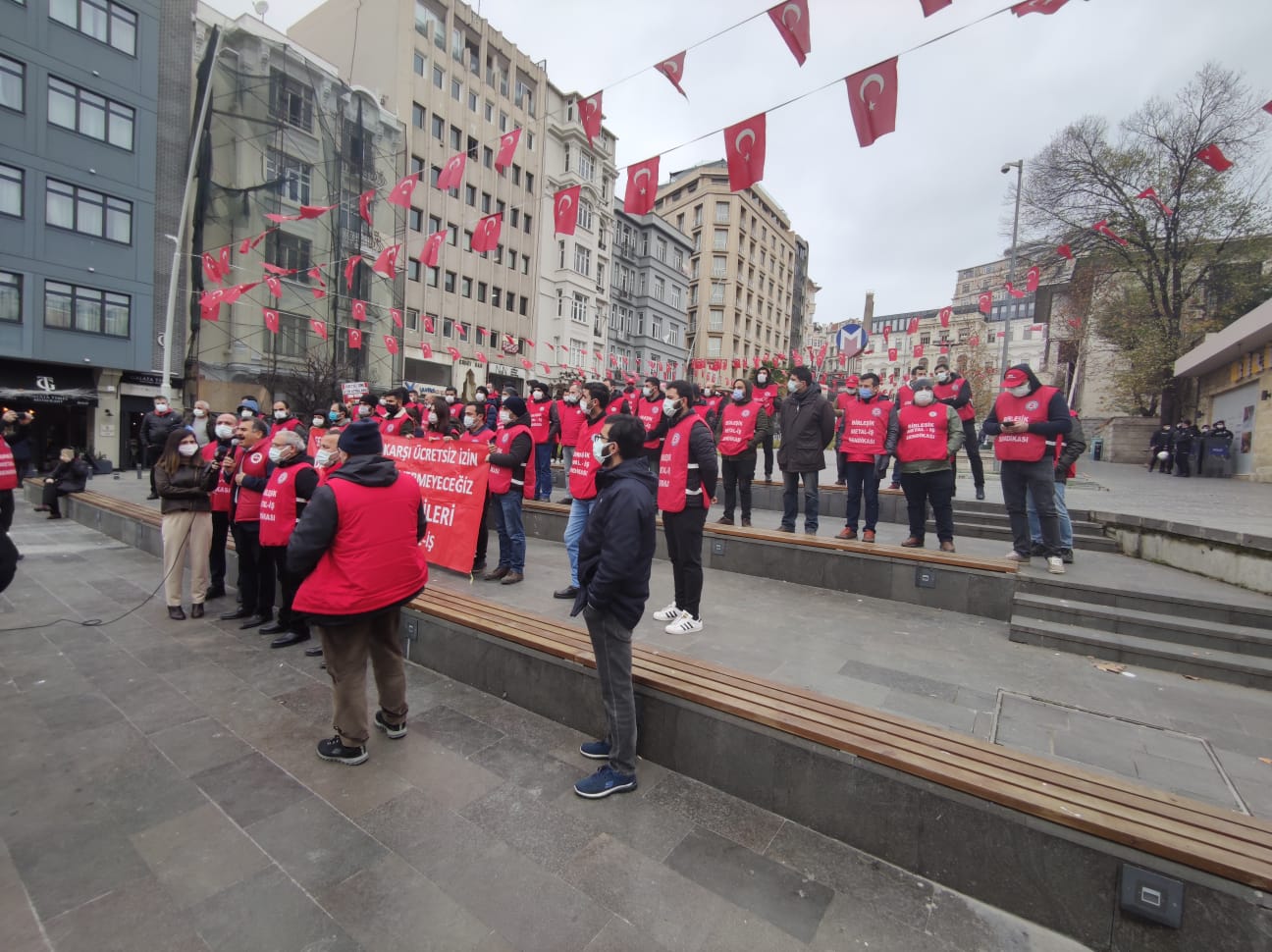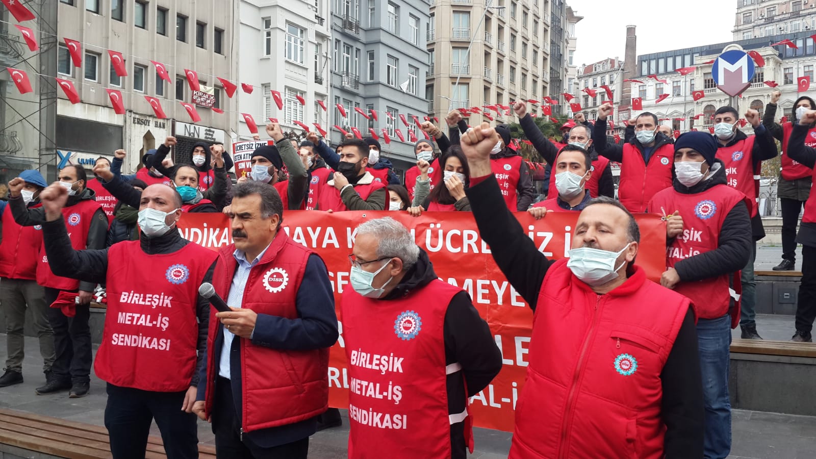 İşten çıkarmaları ve ücretsiz izin uygulamasını protesto etmek, taleplerimizi kamuoyuna taşımak amacıyla İstanbul Şişhane Meydanı’nda bir basın açıklaması yaptık.