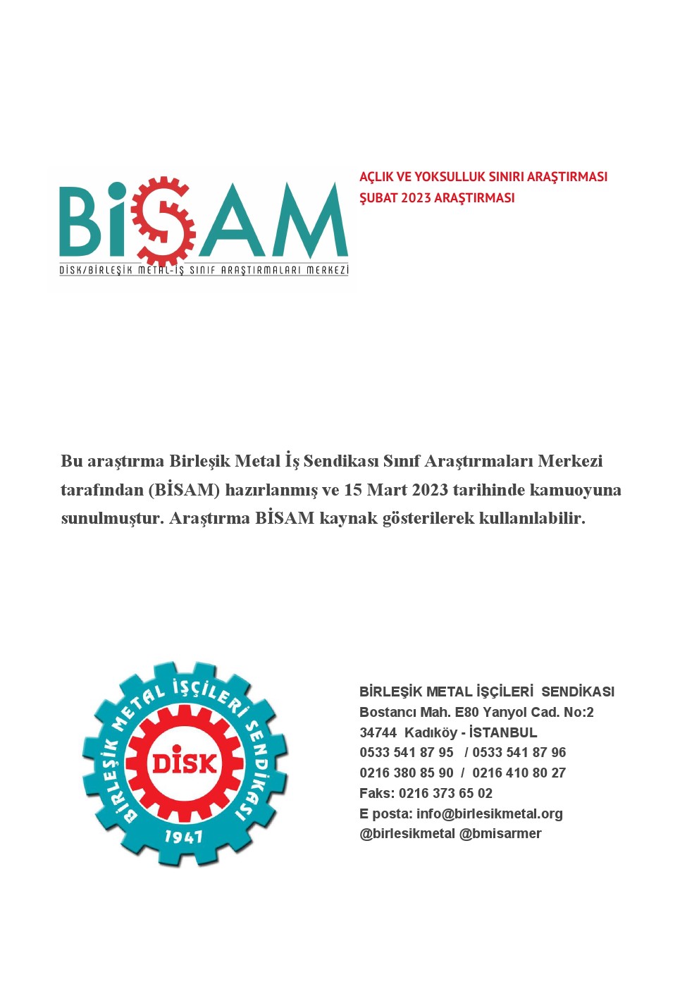 TÜİK (Türkiye İstatistik Kurumu) Şubat 2023 harcama gruplarına göre endeks rakamları, 2003 yıllı madde fiyatları ile İstanbul Halk Ekmek, zincir market cari ay internet fiyatları ve BİSAM Beslenme Kalıbı üzerinden yapılan hesaplamaya göre dört kişilik bir ailenin sağlıklı ve dengeli beslenmesi için aylık yapması gereken harcama tutarı Şubat 2023 için 9 bin 234 liradır. Bu harcama tutarı sadece gıda için yapılması gereken minimum tutardır. Açlık sınırı üzerinden hanehalkı tüketim harcamaları esas alınarak yapılan hesaplama sonuçlarına göre ise yoksulluk sınırı 31 bin 939 lira olarak gerçekleşmiştir.
