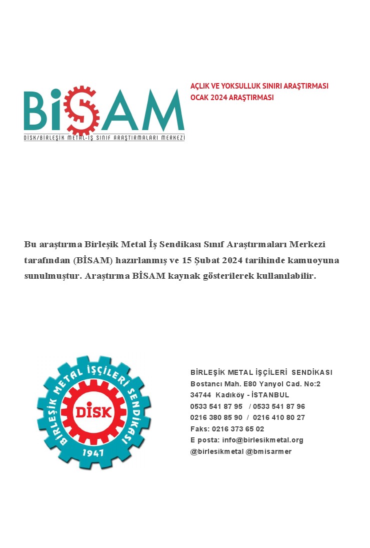 AÇLIK VE YOKSULLUK SINIRI OCAK 2024 DÖNEM RAPORU