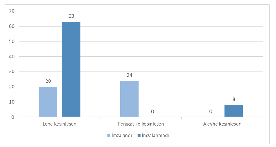 Davası sonuçlanan 71 işyerinde ise TİS imzalanamamıştır. Bu davaların sonuçlarına göre TİS imzalama oranları aşağıda verilmektedir;
