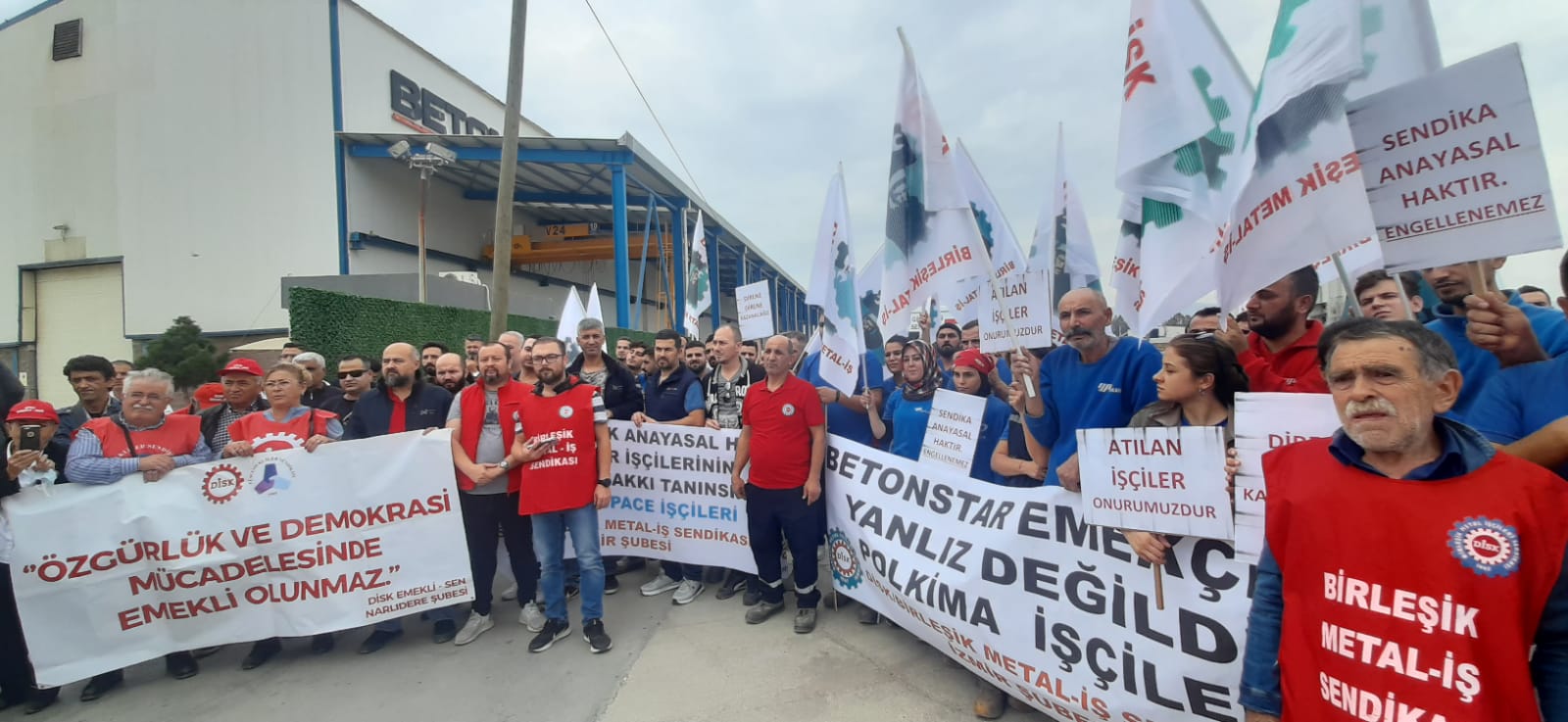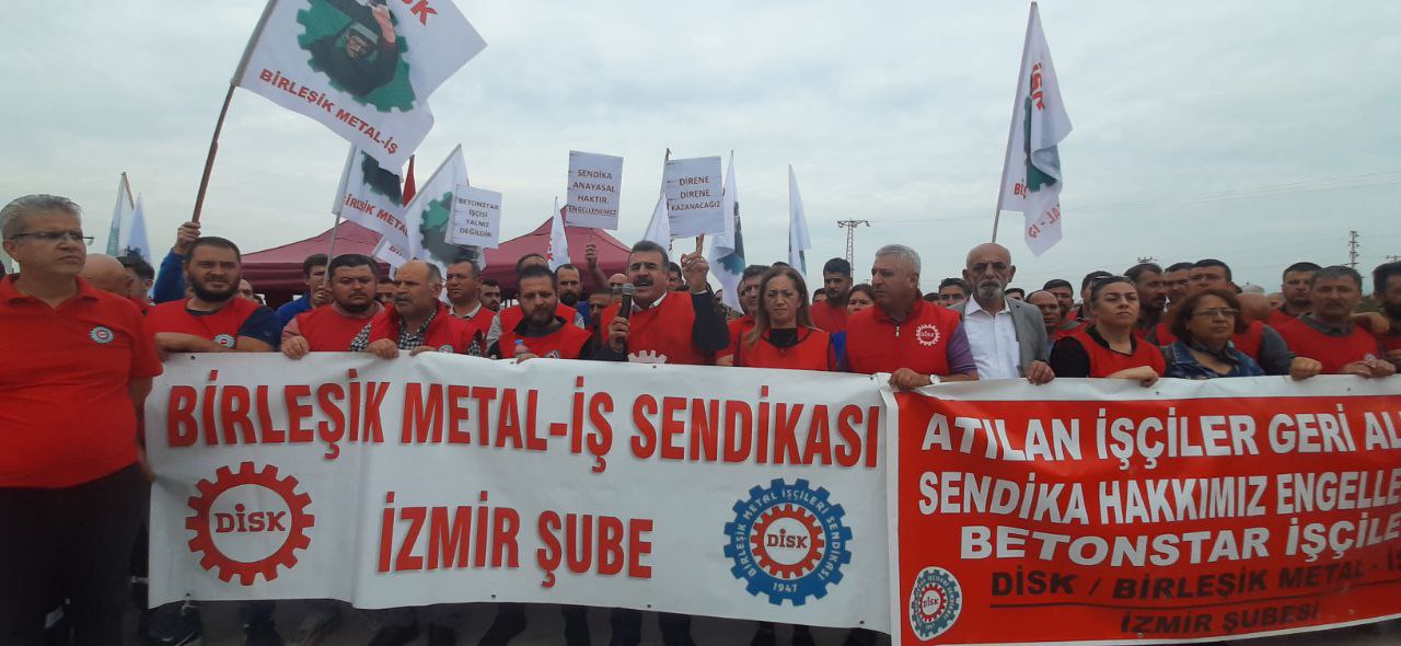 Sendikamıza üye oldukları için işten çıkarılan Betonstar işçileriyle dayanışma eylemi, DİSK Genel Başkanı Arzu Çerkezoglu, DİSK Genel Sekreteri ve Birleşik Metal İş Genel Başkanı Adnan Serdaroğu, DİSK Yönetim Kurulu üyesi Seyit Aslan'ın katılımıyla gerçekleştirildi.