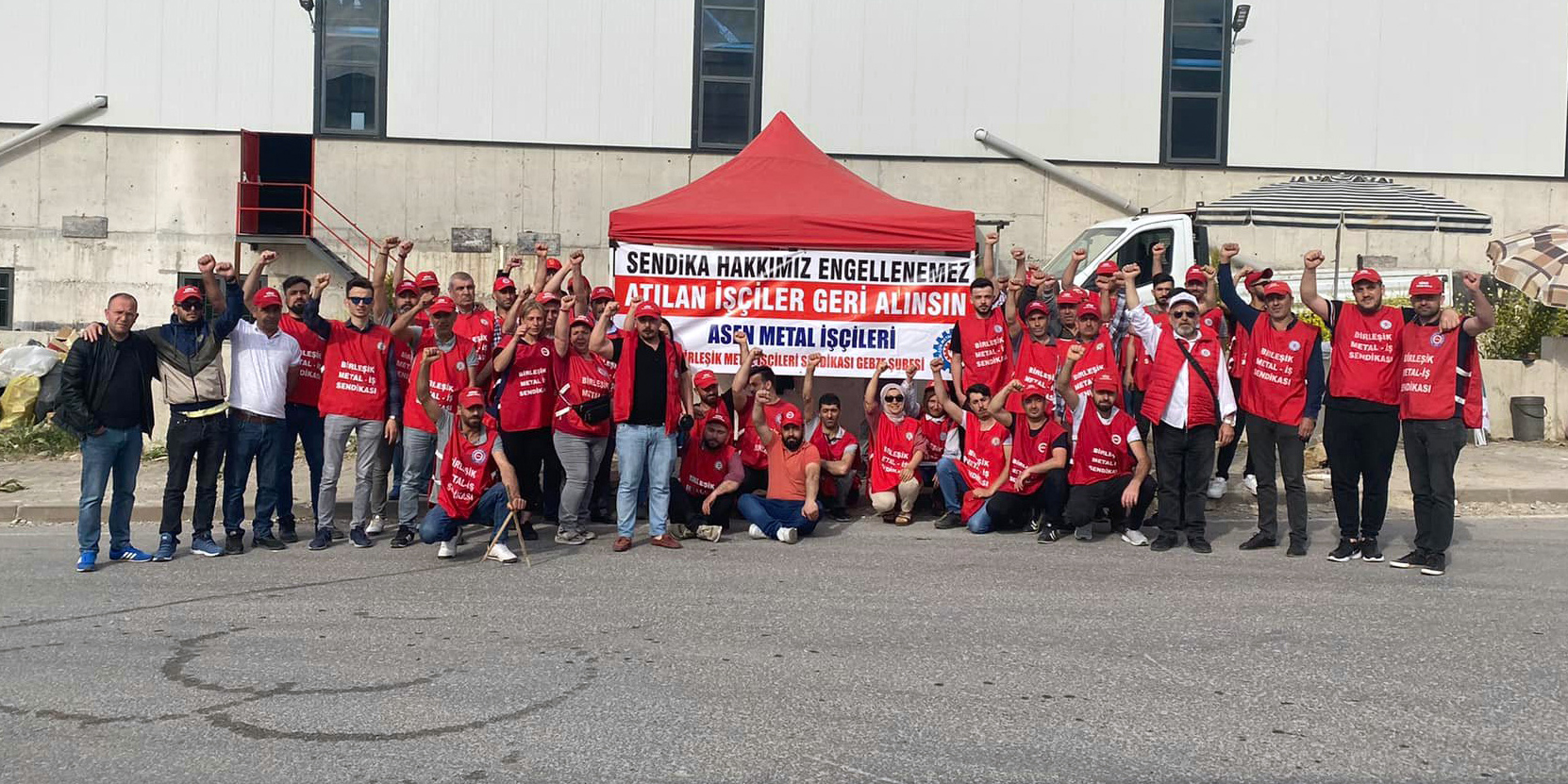 Örgütlenmeden haberdar olan Asen patronları 84 üyemizi hukuksuz bir biçimde işten çıkarttı. İşten çıkartılan 84 işçi 100 gündür Dilovası’nda Anayasal hakları için fabrikanın önünde direnişini sürdürüyor.