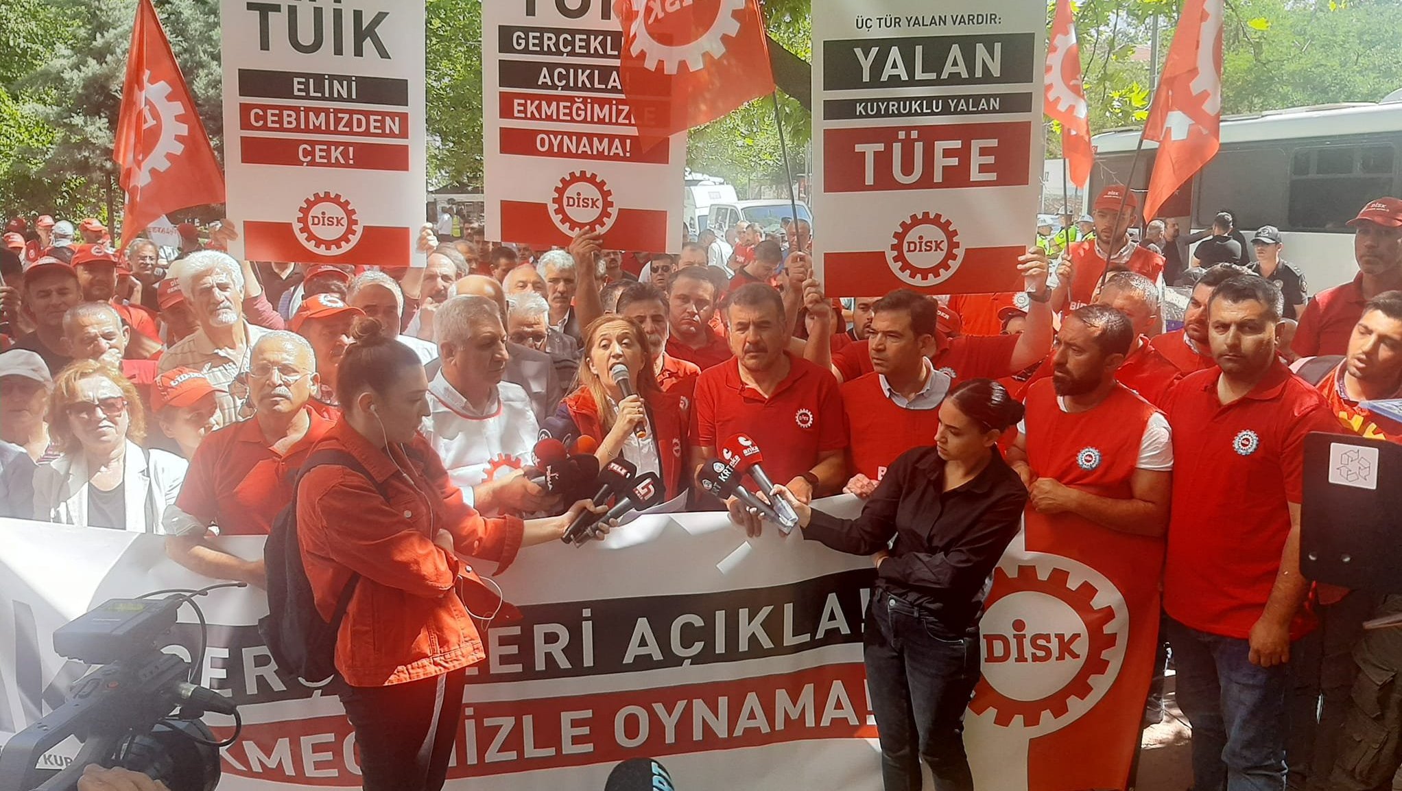DİSK Genel Başkanı, DİSK Yönetim Kurulu üyeleri, sendikamızın merkez ve yöneticileri ile birlikte, Ankara TÜİK önündeydik.. 4 Temmuz'da yapılan basın açıklamasında DİSK'in taleplerini kamuoyu ile paylaştık