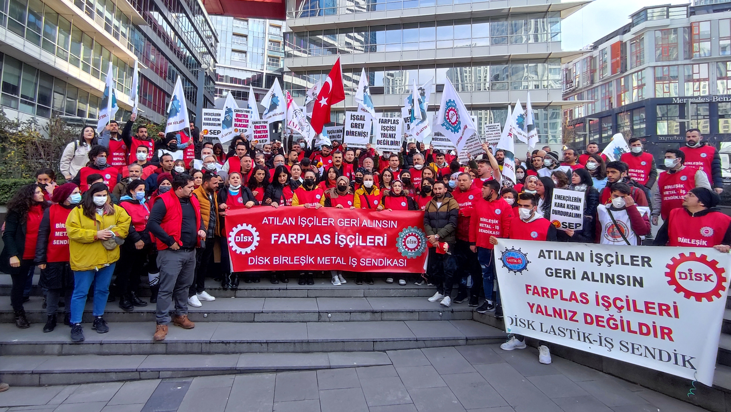 16 Şubat Çarşamba günü Genel Başkanımız Adnan Serdaroğlu ve Farplas işçileri, tepkimizi haykırmak için Maslak'ta Farplas Otomotiv önündeydik.