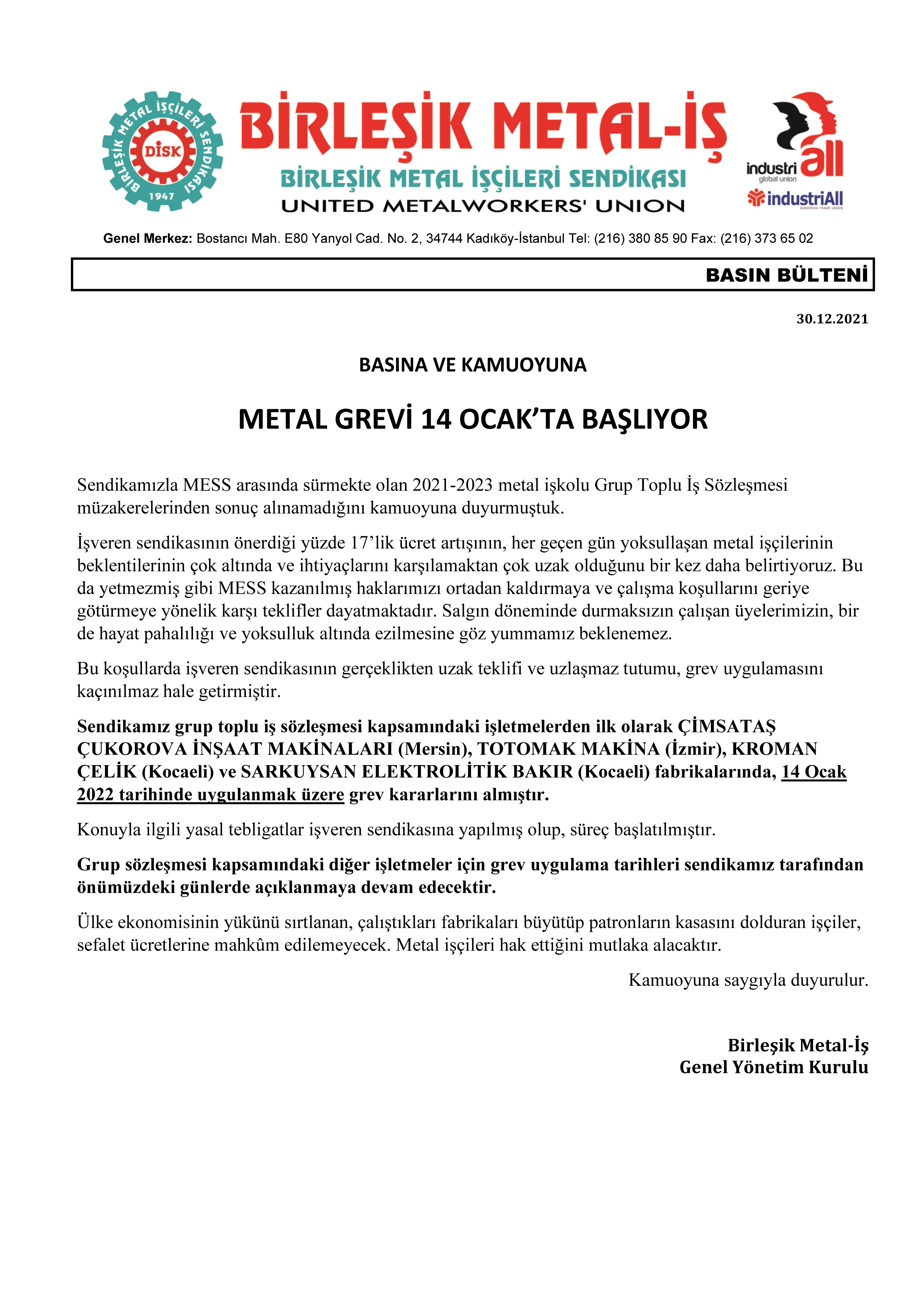 - Metal Fabrikalarında COVİD-19 Gerçeği / Basın Toplantısına Çağrı