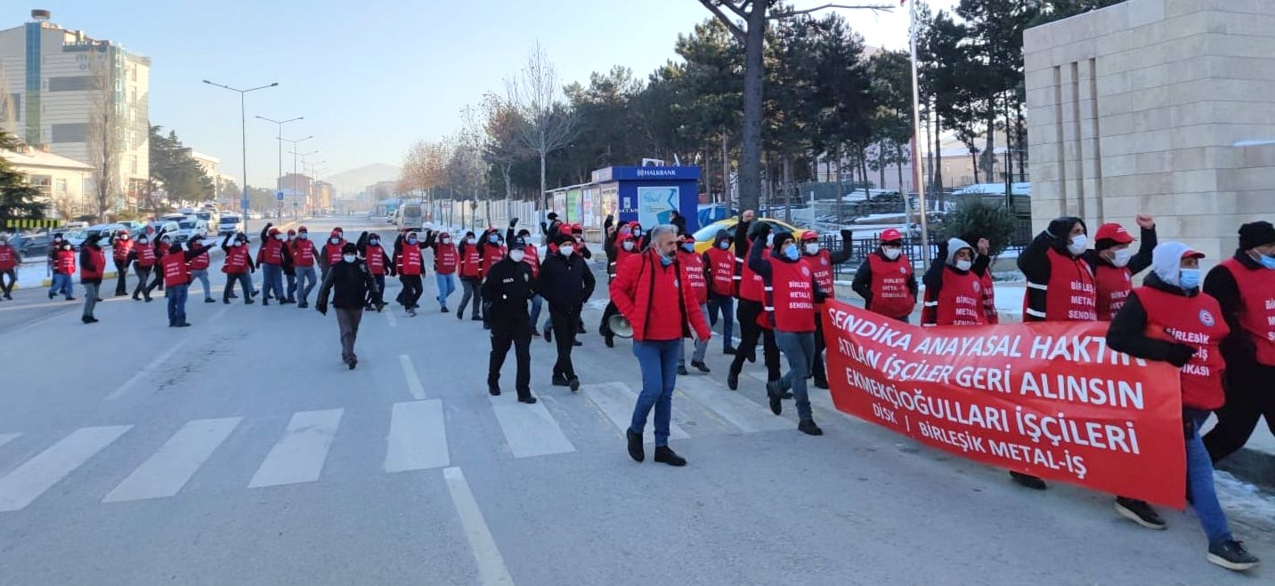 Çorum Ekmekçioğlu işçileri Kadeş Meydanından fabrikaya yürüdü... Fabrika önünden Ankara yolculuğu başladı...