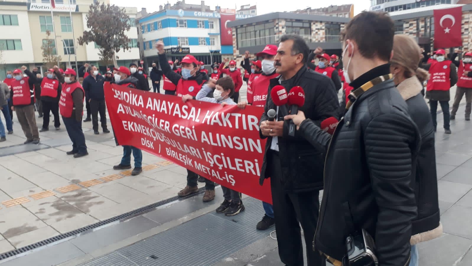 Genel Başkanımız Adnan Serdaroğlu, 16 Aralık Çarşamba günü, direnişçi Ekmekçioğulları işçileriyle birlikte Çorum Meydanı'nda bir basın açıklaması yaptı.