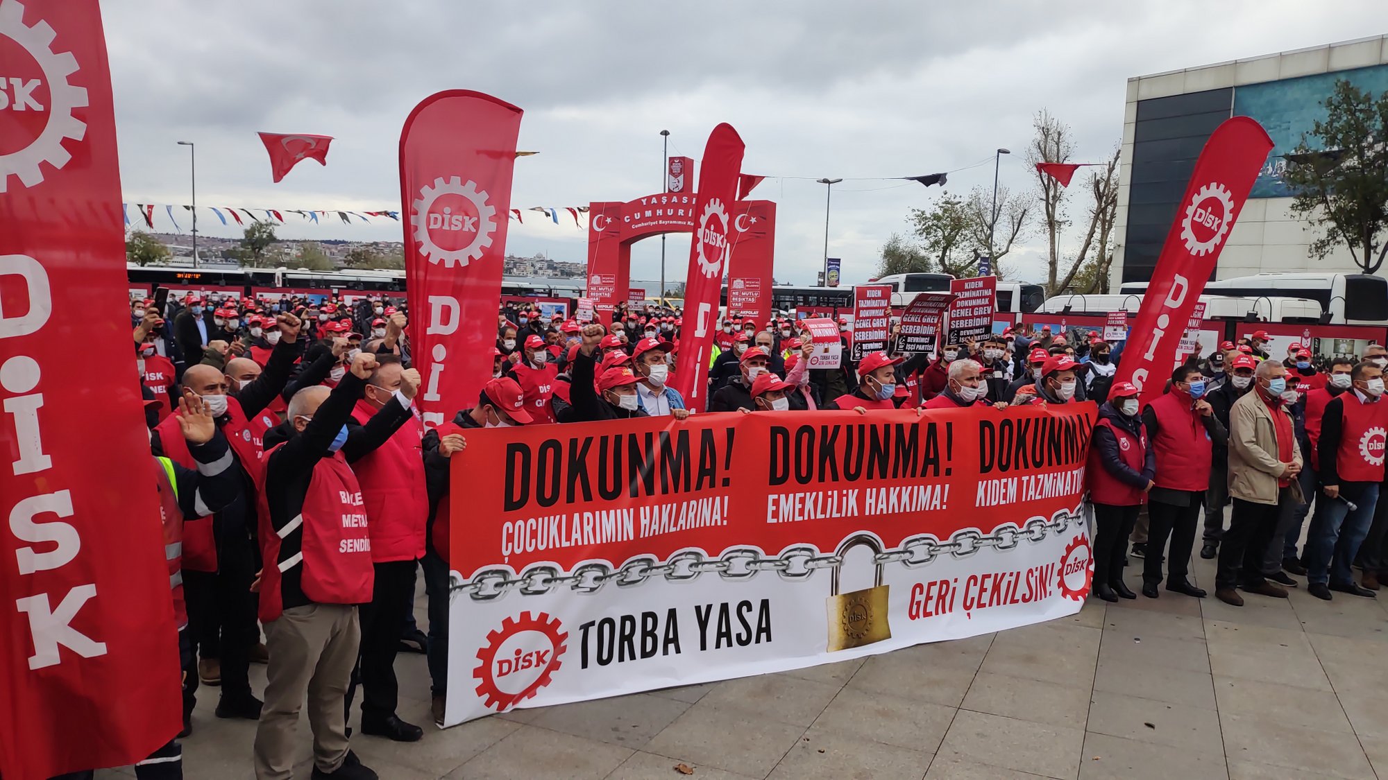 Torba yasanın ilgili maddelerine karşı "Kıdem Tazminatı ve Emeklilik hakkımıza” sahip çıkmak için 10 Kasım 2020 Salı günü BEŞİKTAŞ Barbaros Parkı'nda DİSK Yönetim Kurulu'nun katılımı ile kitlesel basın açıklaması gerçekleştirildi..