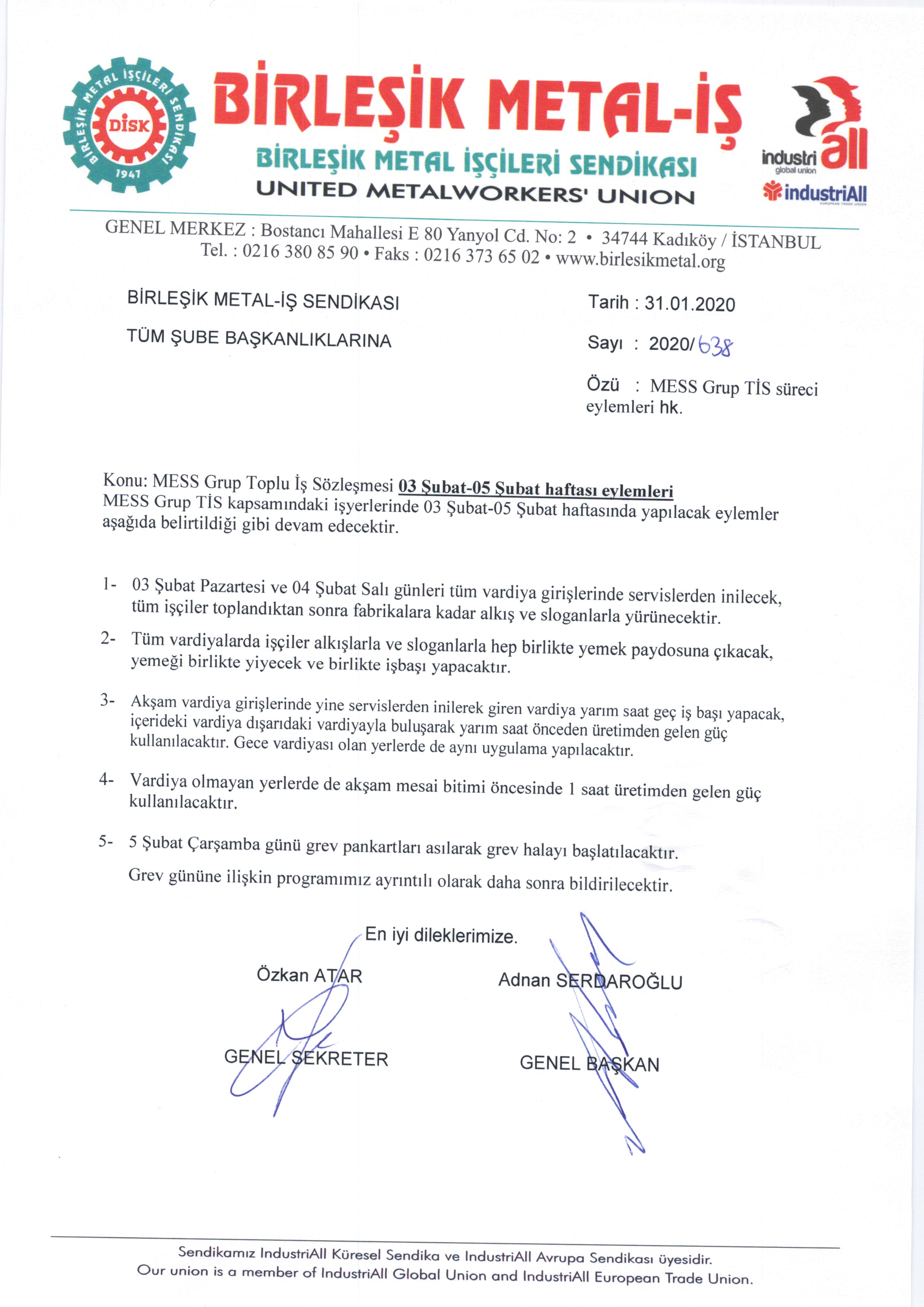 - MESS Grup Toplu İş Sözleşmesi 27 Ocak-3 Şubat haftası eylemleri