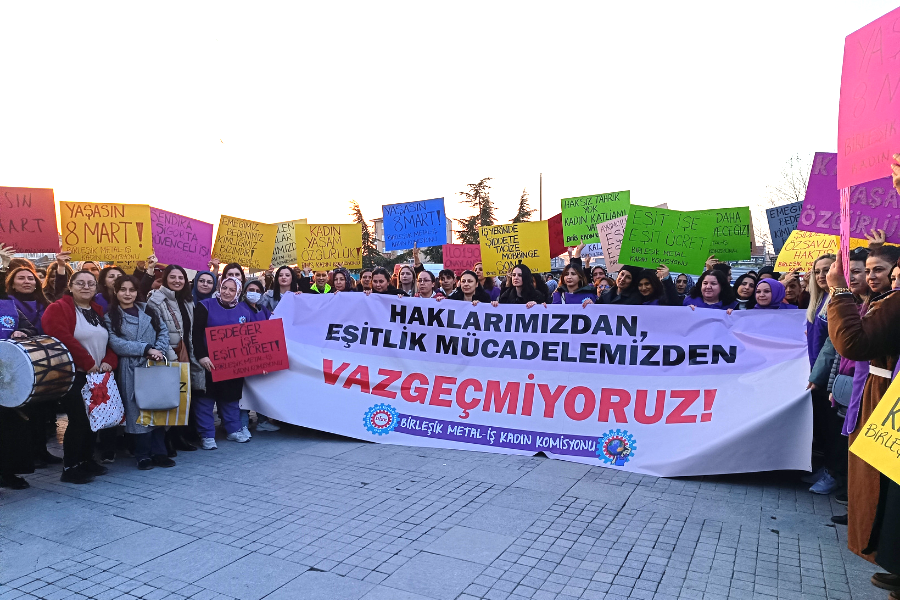 "Biz Birleşik Metal-İş üyesi metal işçisi kadınlar olarak cinsiyetçi ücret eşitsizliğinin son bulması için, eşdeğerde işe eşit ücret için mücadelemizi kararlılıkla sürdüreceğiz."