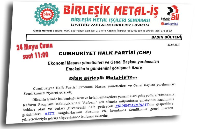 CUMHURİYET HALK PARTİSİ (CHP) Ekonomi Masası yöneticileri ve Genel Başkan yardımcıları Emekçilerin gündemini görüşmek üzere DİSK Birleşik Metal-İş’te…