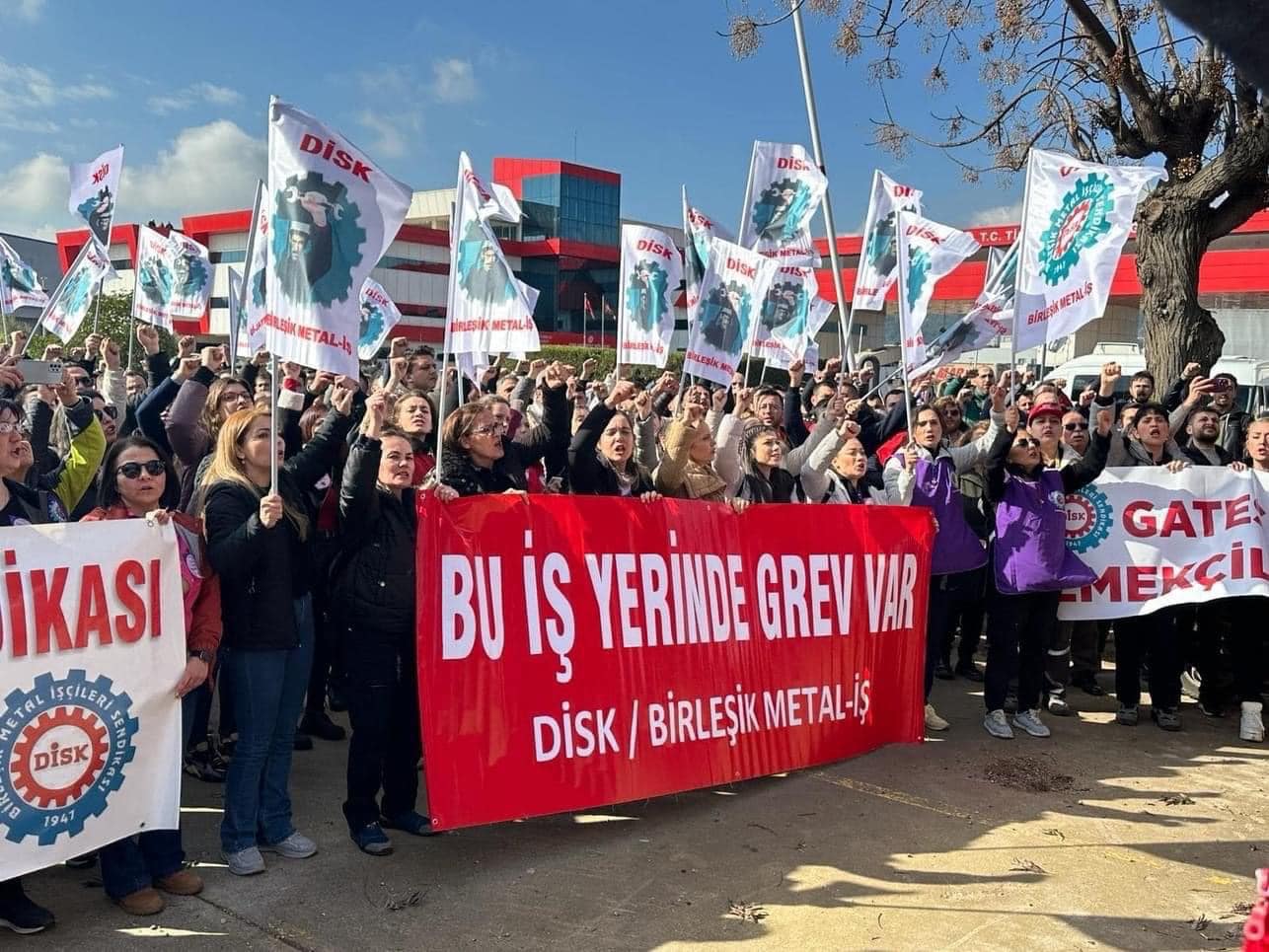 İzmir’de, Ege Serbest Bölge’de faaliyette bulunan ve bir ABD şirketi olan Gates Endüstriyel Metal Kauçuk Sanayi ve Ticaret A.Ş. (GATES) işyerinde 27 Eylül 2023’te başlayan toplu sözleşme görüşmelerinde anlaşma sağlanamaması üzerine, tüm yasal süreçlerin tamamlanmasının ardından sendikamız, üç fabrikada 350 işçi ile 8 Mart 2024’te greve çıkmıştır.