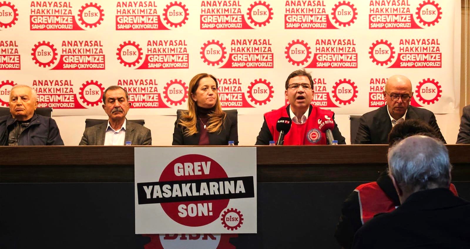 “Grev ertelemesi adı altındaki yasağın ardından 14 Aralık sabahı Genel Yönetim Kurulu olarak yaptığımız açıklamada, hakka ve hukuka uygun olmayan, Anayasa’ya, Anayasa Mahkemesi kararlarına aykırı, gayrimeşru grev yasağını tanımayacağımızı ifade etmiştik.