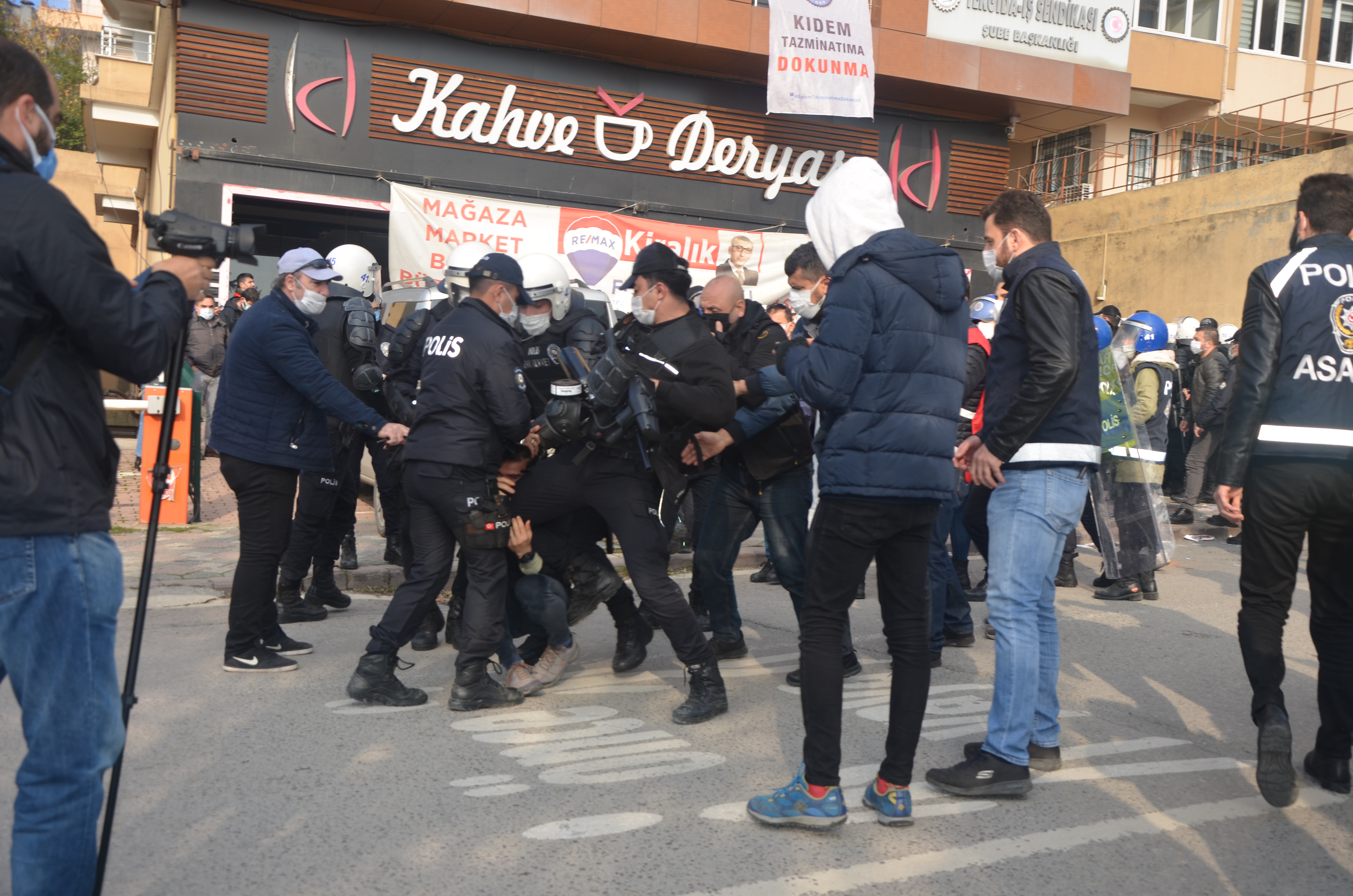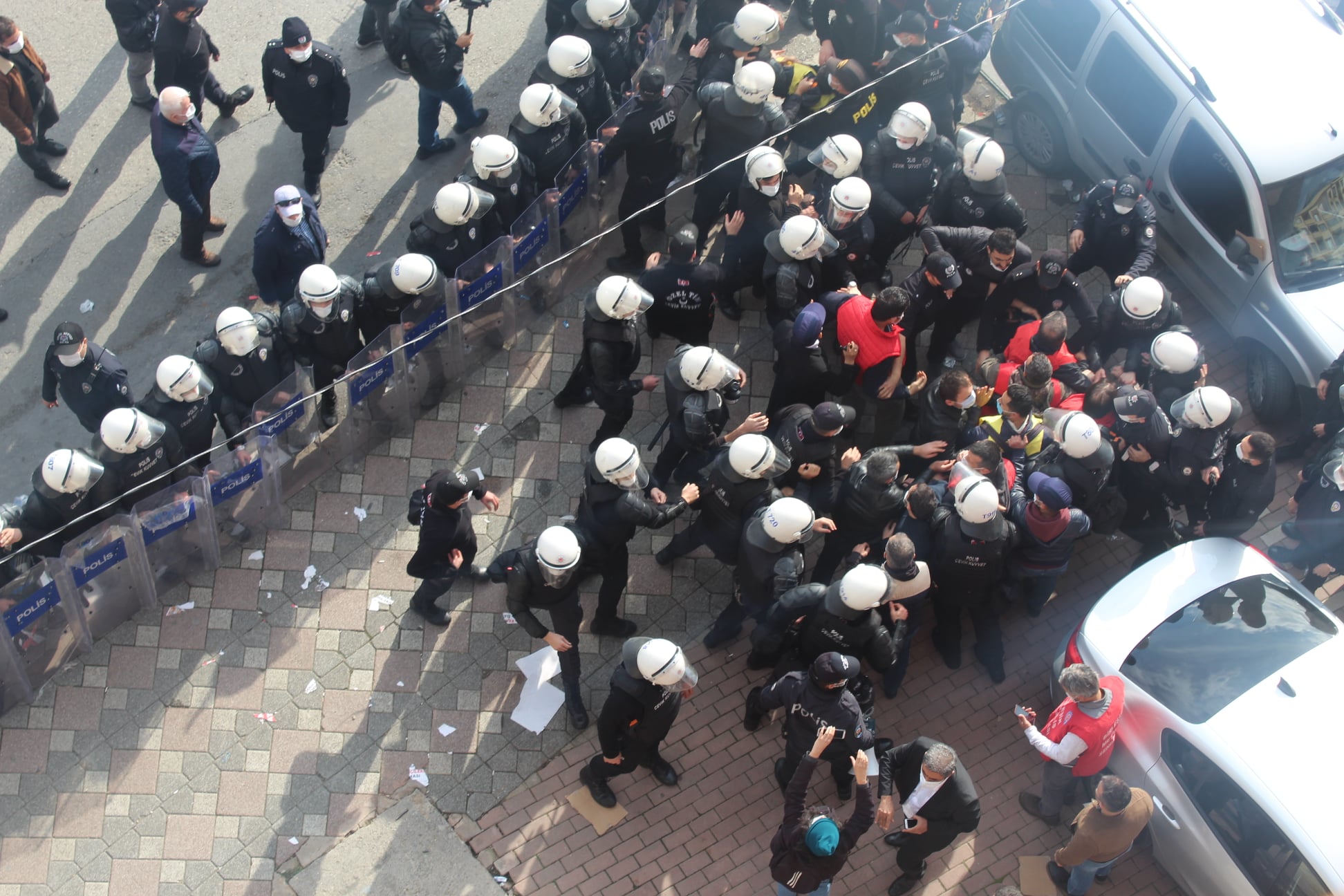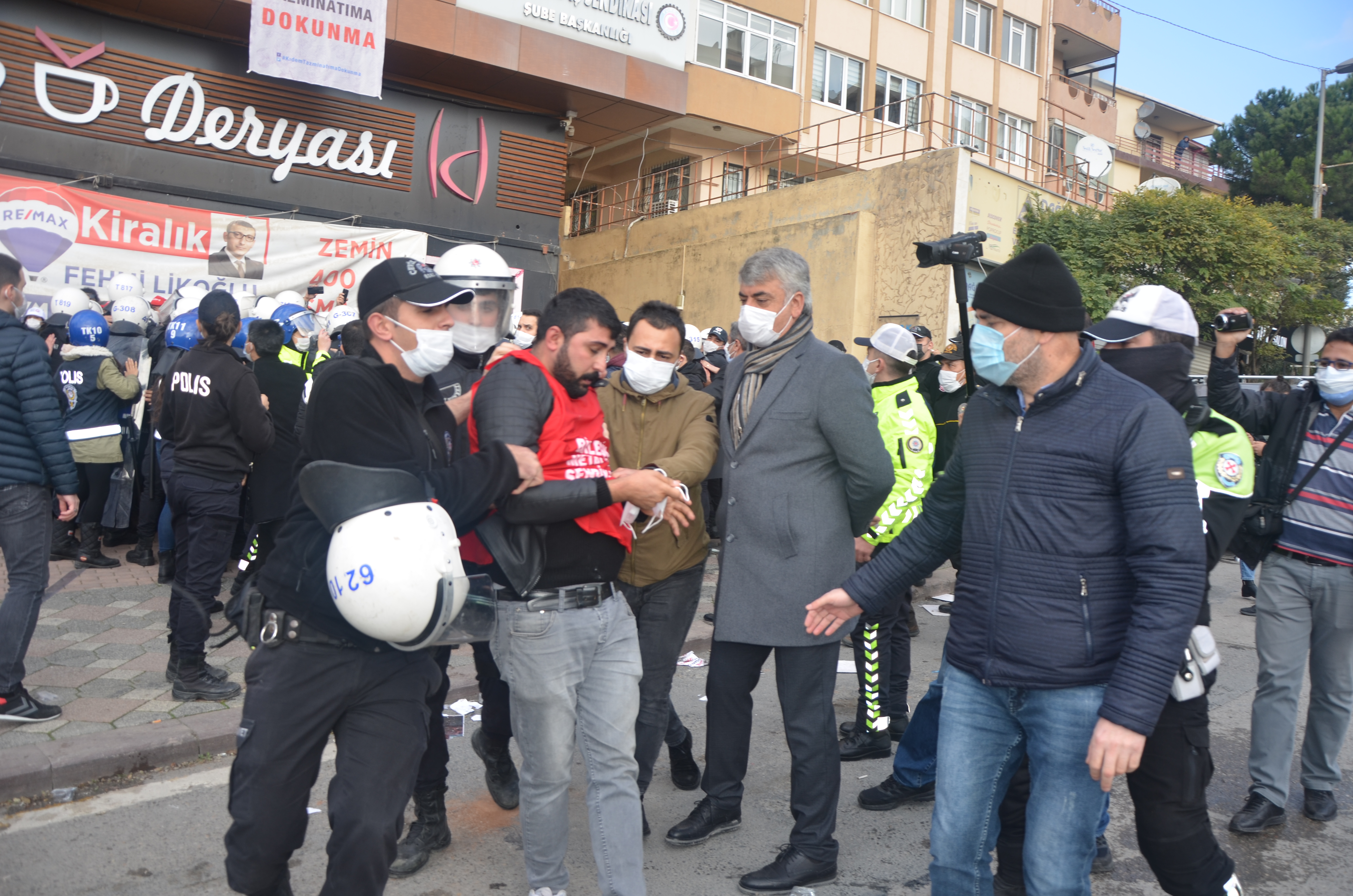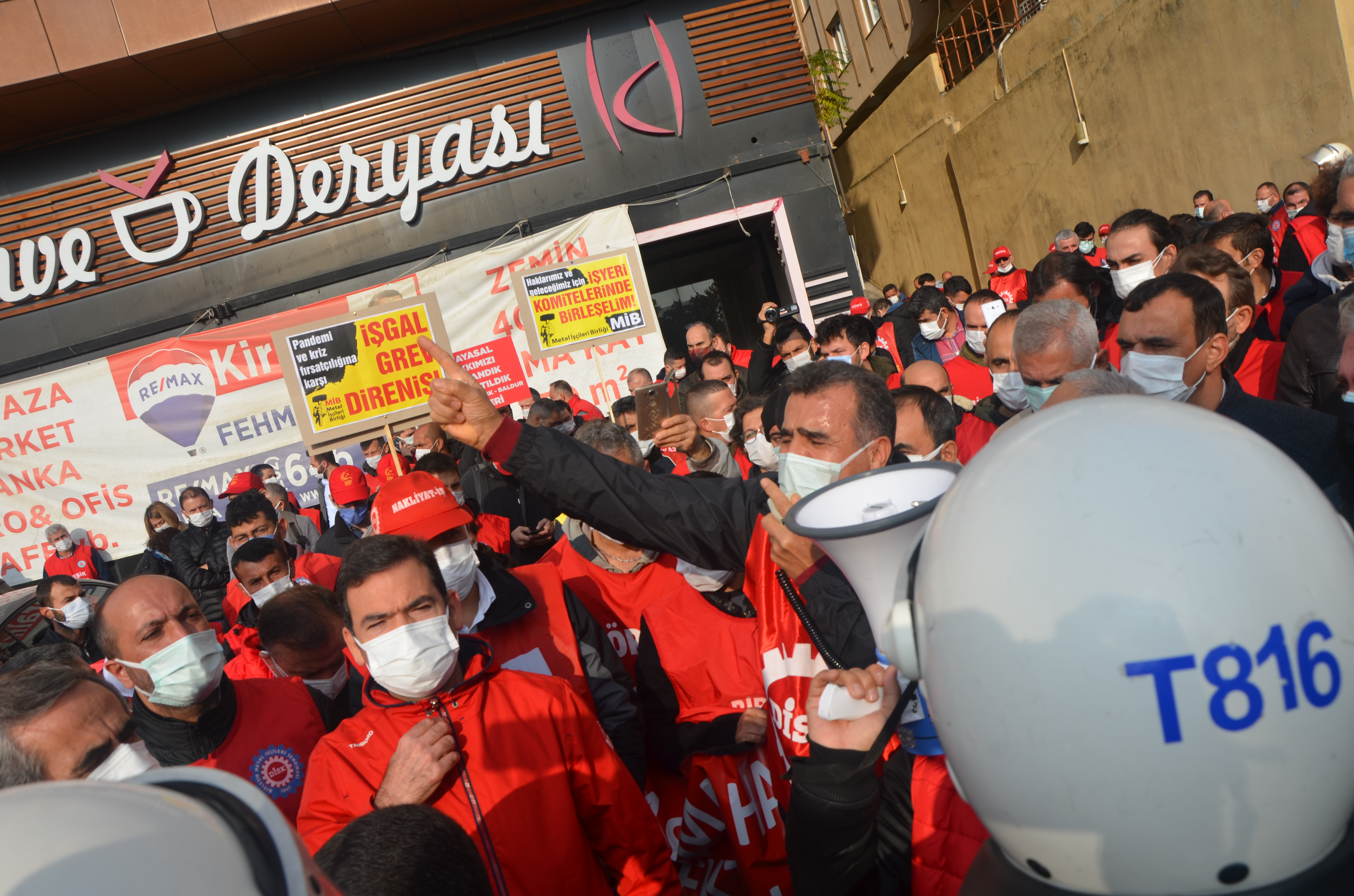 Pandemi gerekçesiyle yürüyüşümüzü engelleyen Valilik, emniyet güçlerinin pandemi kurallarını ihlal ederek sendika şube binamızı abluka altına almasına ve polisin sert müdahalesine göz yummuştur.