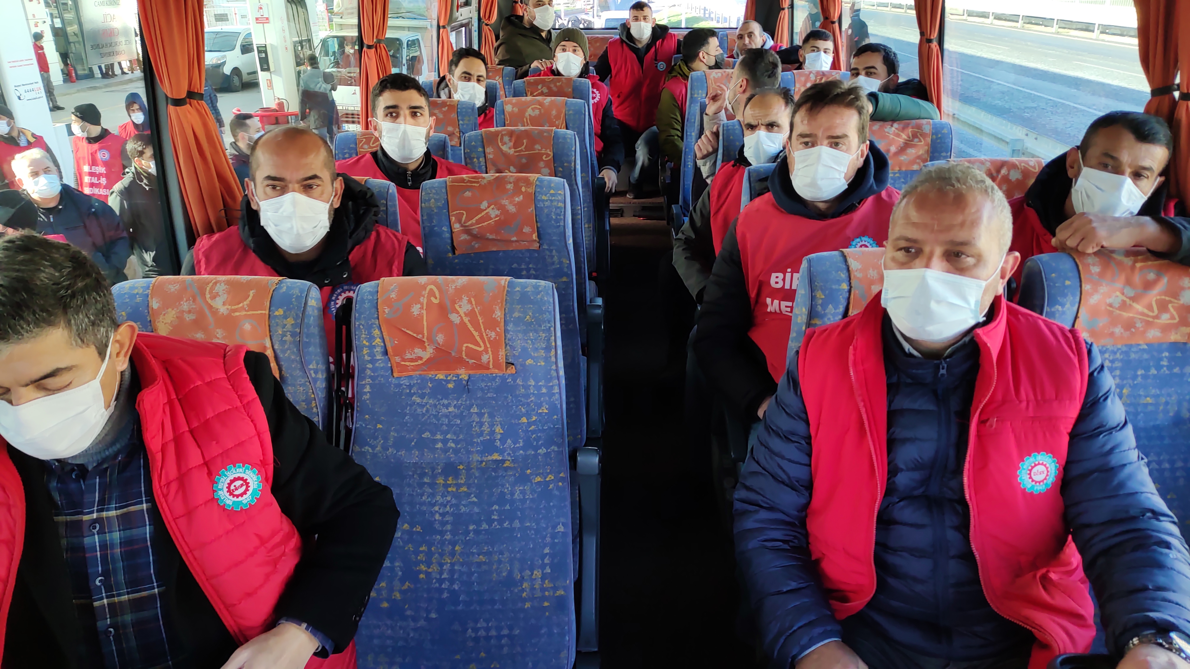 Daha sonra sloganlarla otobüse binen metal işçileri, Ankara'ya yola çıktı.