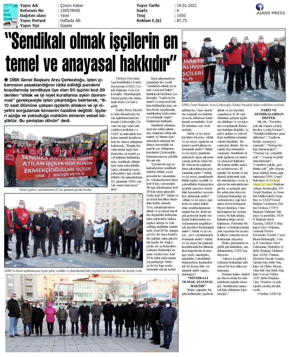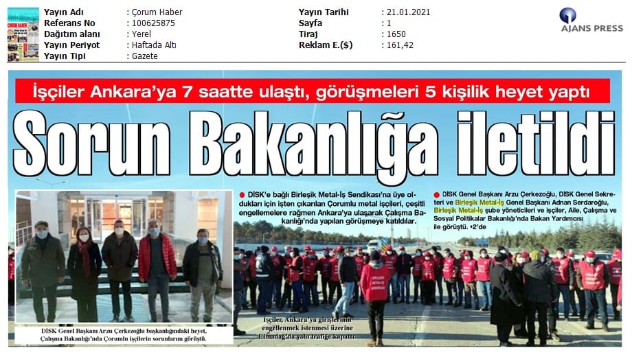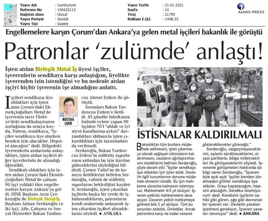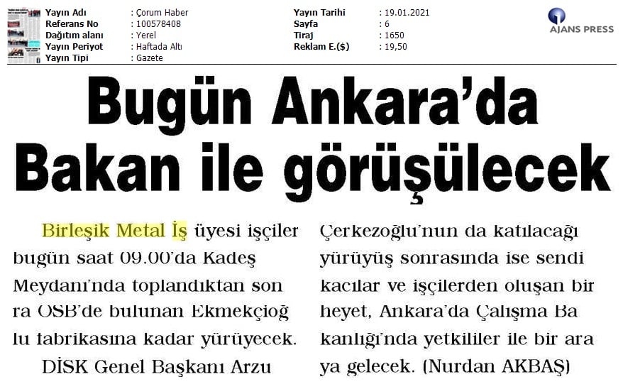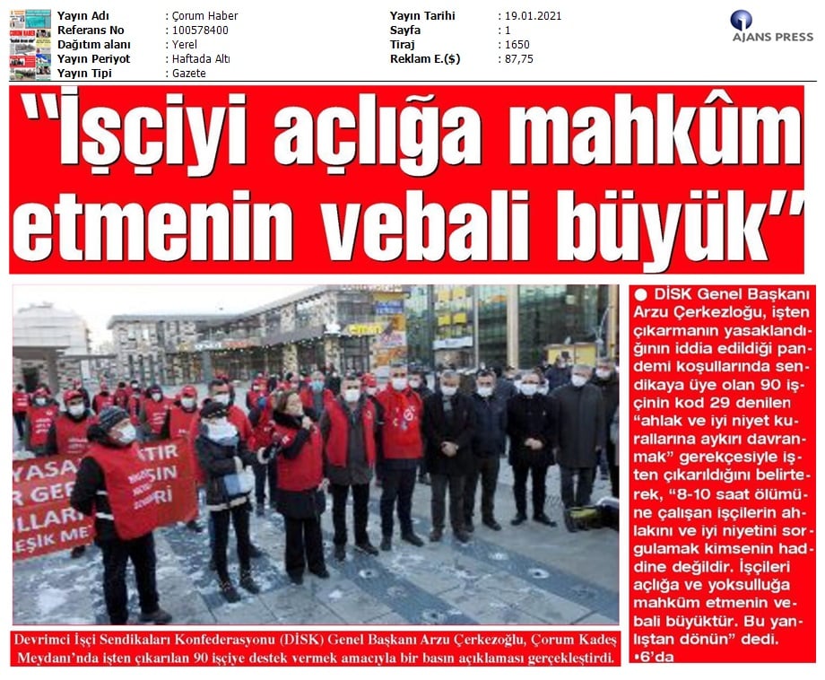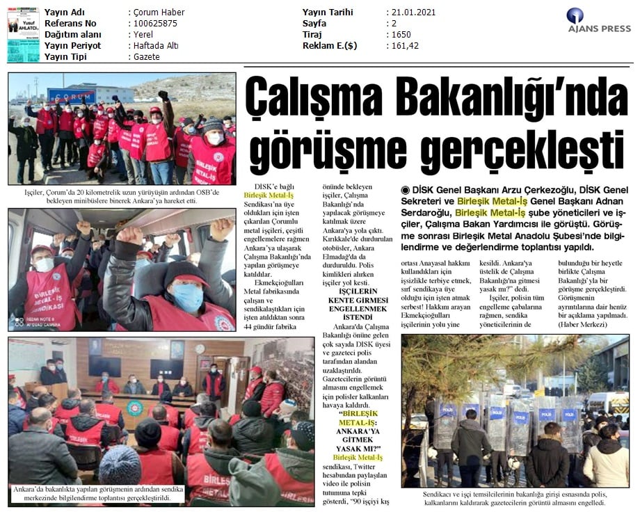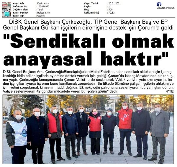 Çorum Ekmekçioğulları işçilerinin mücadelesi medyada..