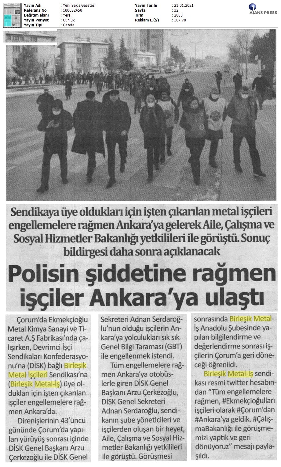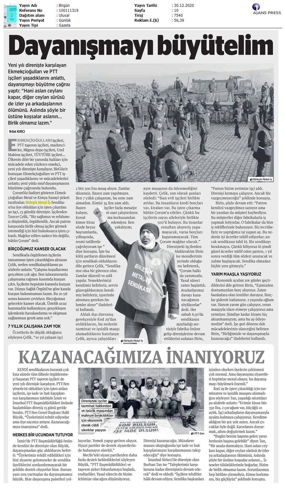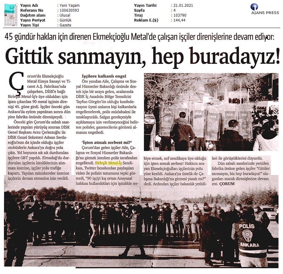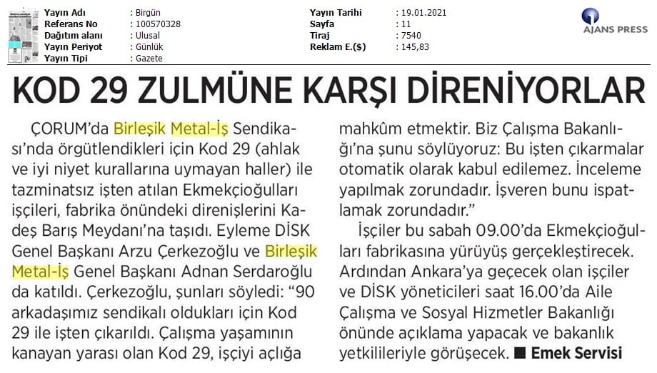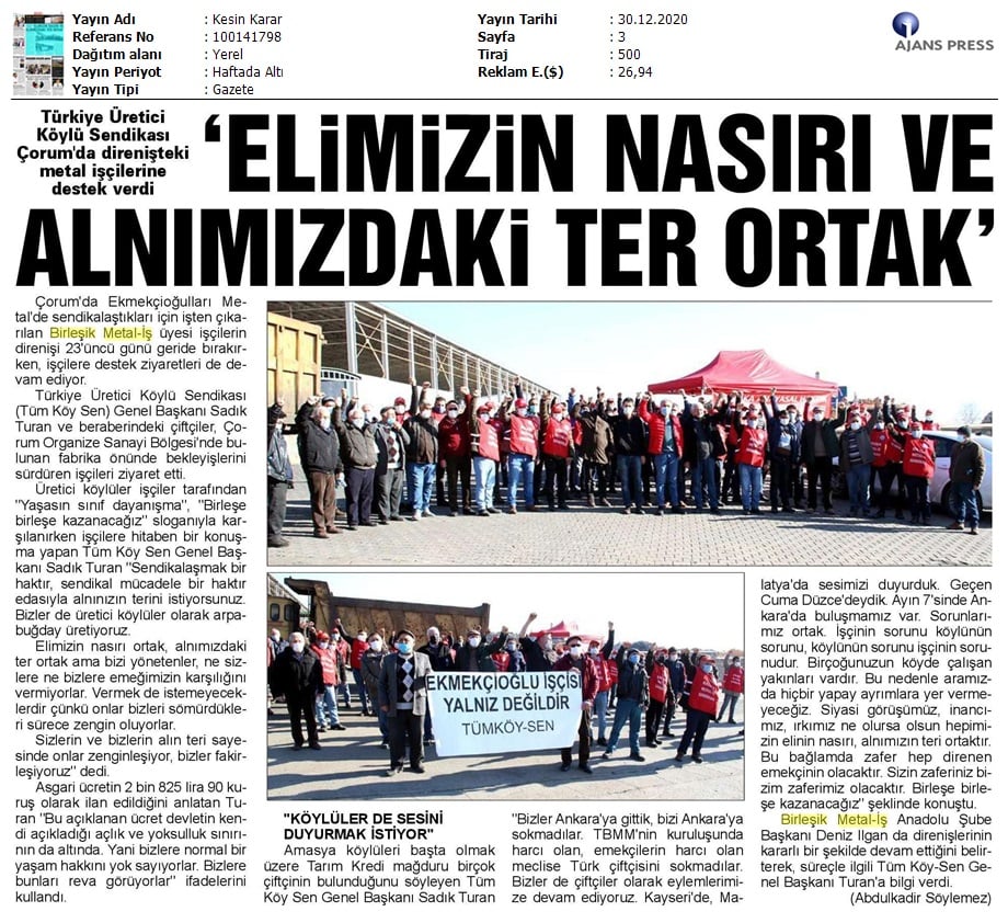 Çorum Ekmekçioğulları işçilerinin mücadelesi medyada..