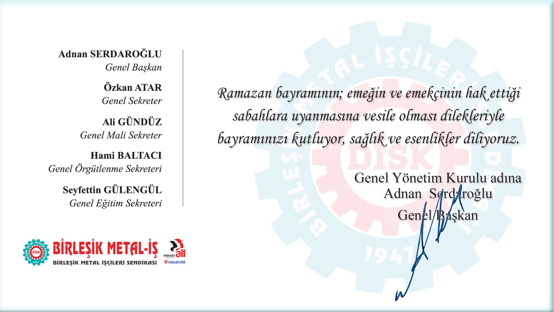 Gönlümüzce yaşayacağımız bayramlara duyduğumuz umut ve heyecanla sizlerin ve sevdiklerinizin ramazan bayramını kutluyor, esenlikler diliyoruz.