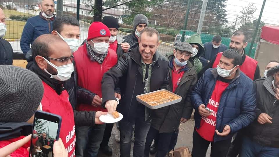 Baldur Grevimizin 32. gününde işçileri ziyaret ederek baklava dağıtan Haluk Levent: "Nerde bir grev görürseniz işçilere bir selam verin kalp yollayın"