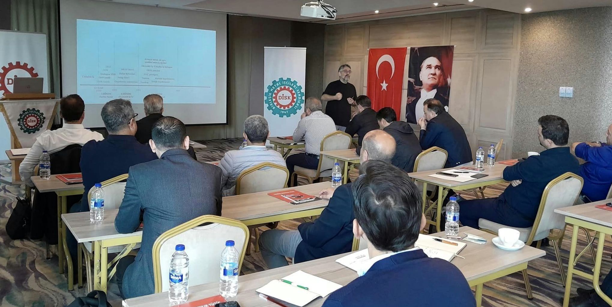 Sendikamızın merkez ve şube yöneticilerinin katıldığı 2 günlük "Yönetici Eğitimi"; sendikamızın TİS Uzmanı Can ŞAFAK’ın “Geçmişten Günümüze TİS’ler ve İlkelerimiz”
