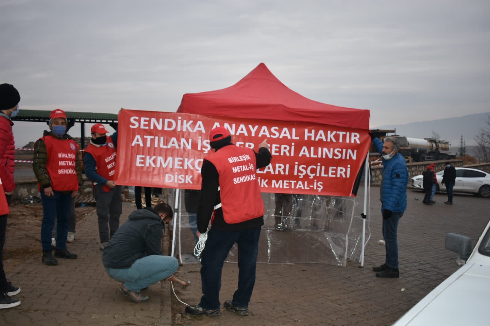 Metal işçilerinin direnişinin 8. Gününde Çorum Ekmekçioğulları fabrikası önüne Direniş Çadırı kuruldu.