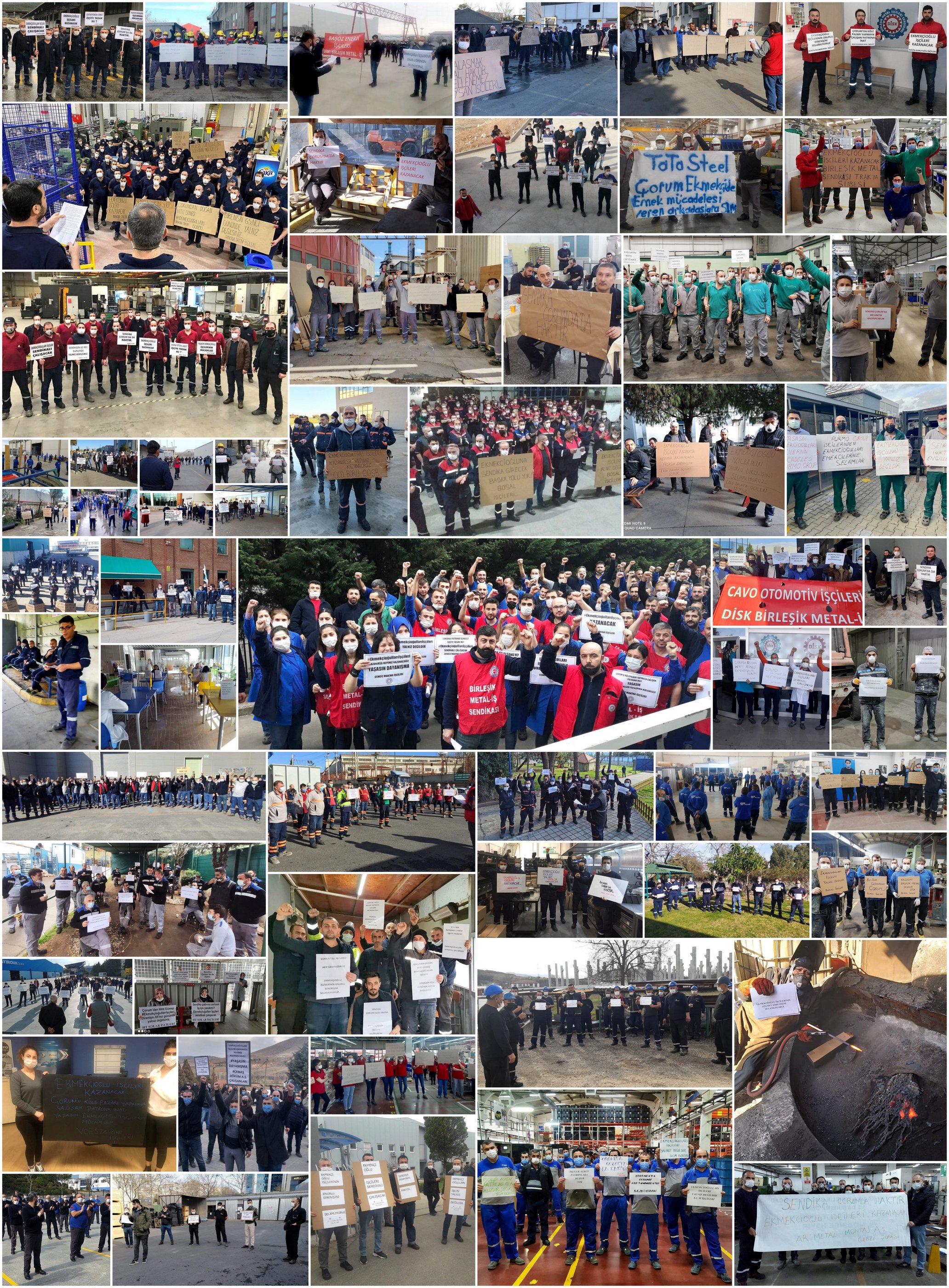 Bugün İstanbul ve Çorumda yapılacak eşzamanlı basın açıklamasına destek için, Türkiyenin her köşesinden örgütlü olduğumuz işyerlerinden metal işçileri, Çorum Ekmekçioğulları işçilerinin direnişini selamlıyor.. Gün boyu fabrikalardan fotolar ve güncel gelişmeleri sosyal medya hesaplarımızdan takip edebilirsiniz.