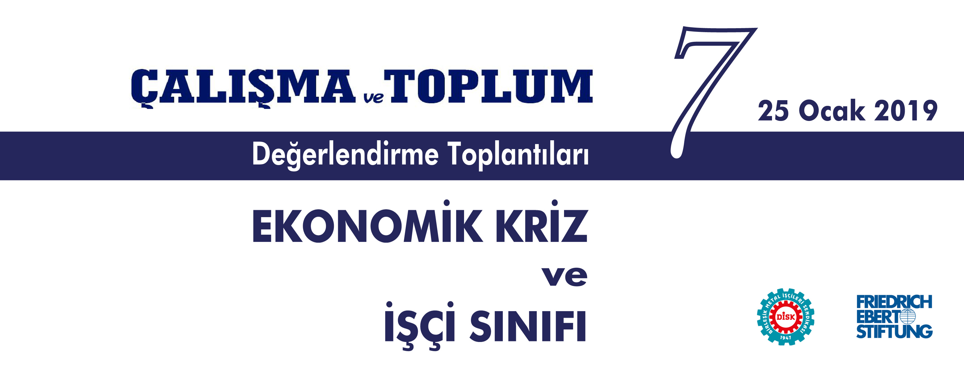 Çalışma ve Toplum Değerlendirme toplantılarının yedincisi, "Ekonomik Kriz ve İşçi Sınıfı" başlığıyla 25 Ocak Cuma günü, Taksim Elit World Otel'de gerçekleştiriliyor.