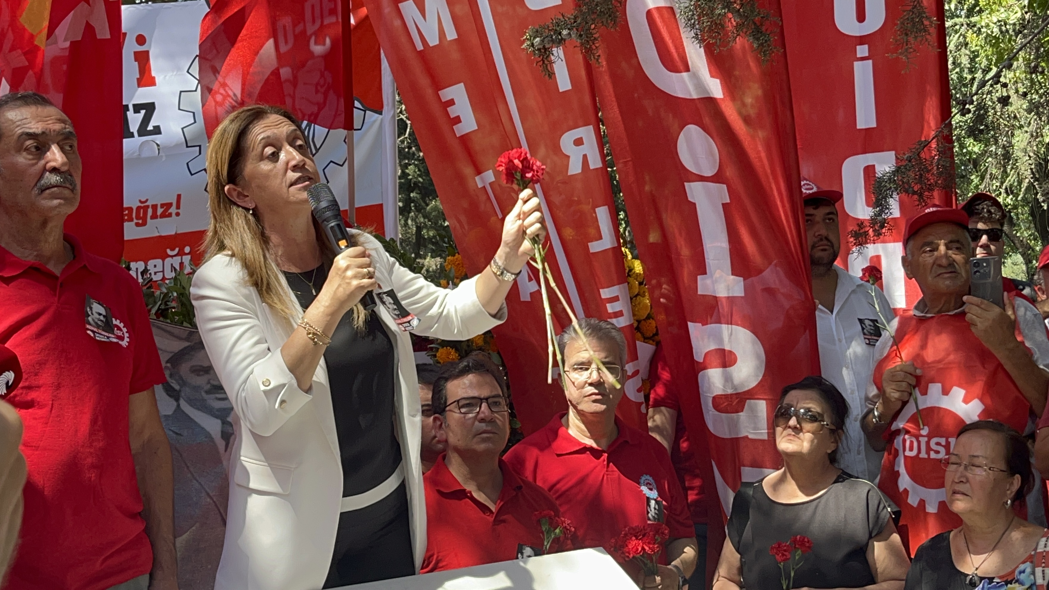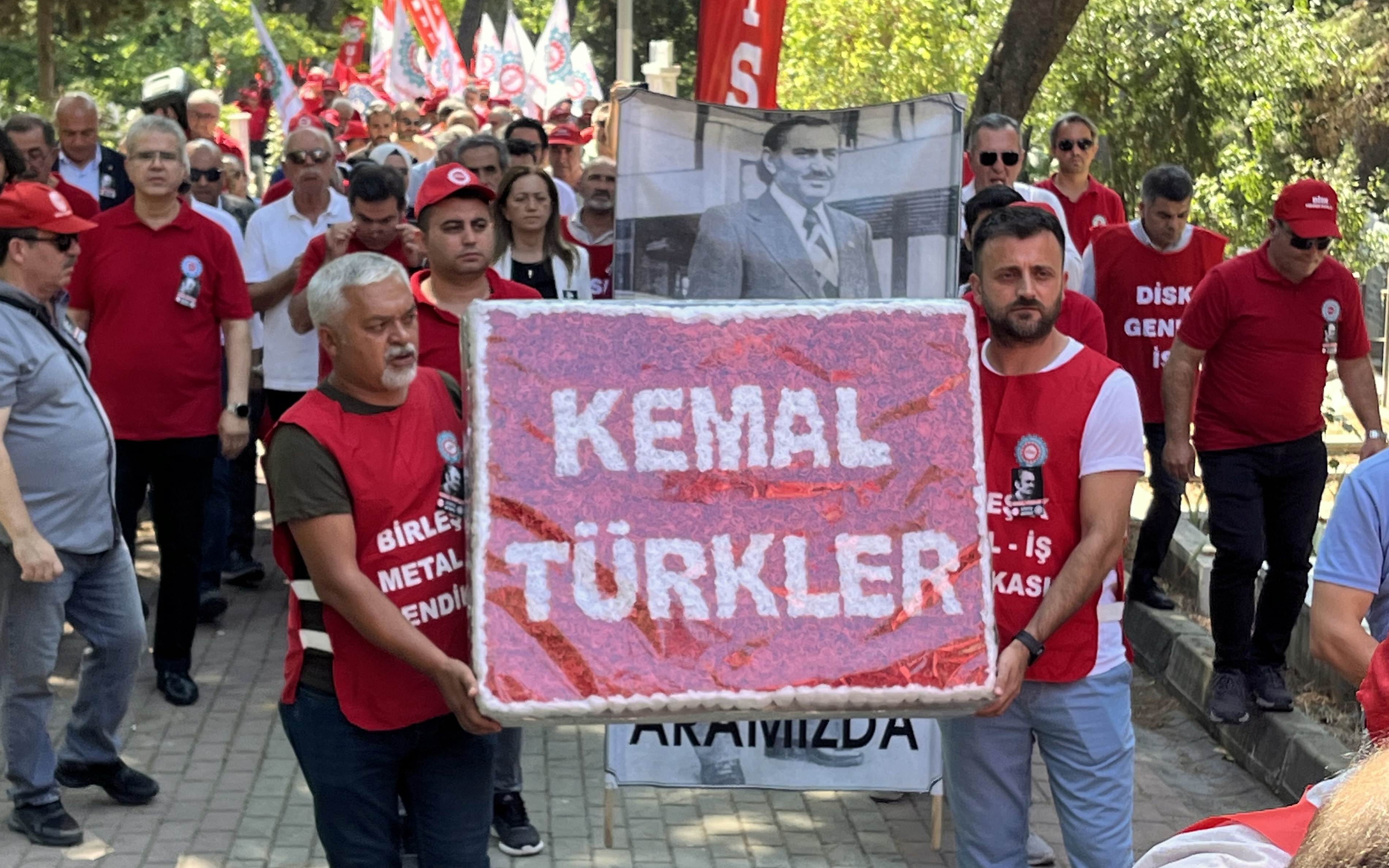 … Bugün sermayenin ve baskıcı, gerici siyasi iktidarların, işçi sınıfının üzerine karabasan gibi çökmüş olan ekonomik saldırı paketlerine karşı yine Kemal Türkler gibi liderlerimizin idealleri, ilkeleri ve gösterdikleri yolda ilerleyerek, mücadelemizi sürdüreceğimizi bir kez daha buradan altını çizerek ifade etmek istiyorum” dedi.