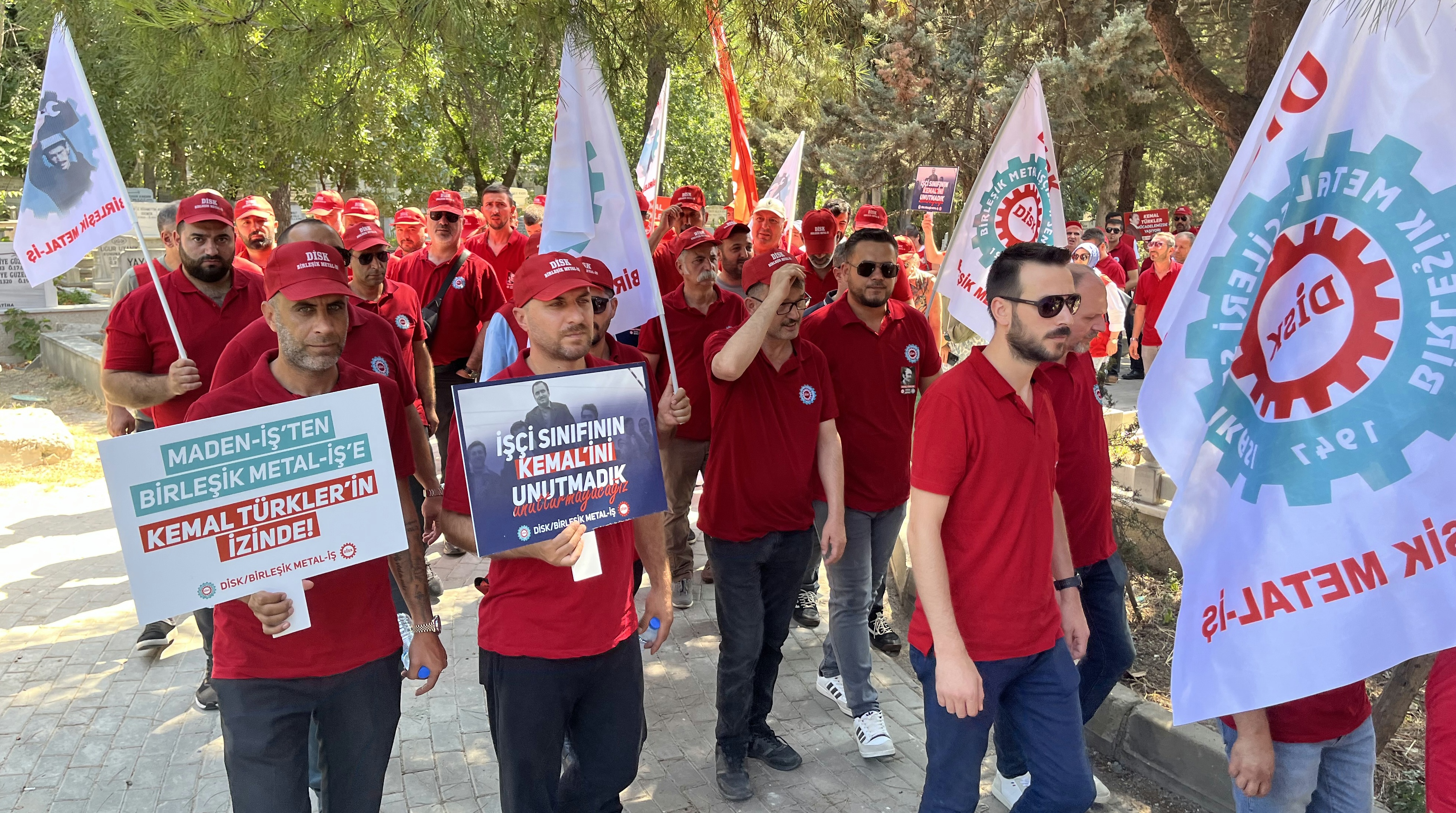 Törene katılan yüzlerce kişi Topkapı Çamlık mezarlığı girişinden Türkler’in mezarına kadar ‘Kemal Türkler ölümsüzdür’ ve ‘Faşizme karşı omuz omuza’ sloganları eşliğinde yürüdü.