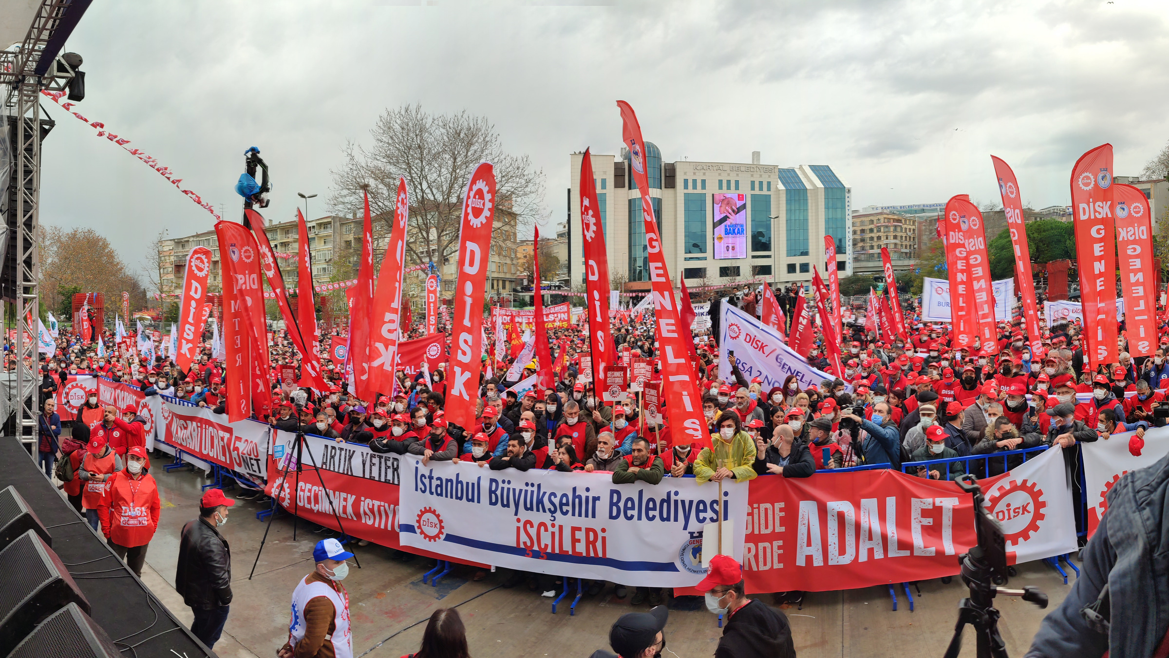 DİSK’in “Artık yeter! Geçinmek istiyoruz” sloganıyla 12 Aralık 2021 Pazar günü İstanbul Kartal’da düzenlediği mitingte katılım yoğun oldu.. 20 bin kişi sloganlarla yürüdü.. Pankartları ardında metal işçileri tüm coşkularıyla ön saflardaydı...