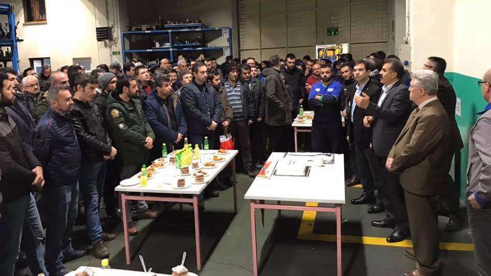 Bursa Şubemize bağlı Şahinkul Makina işyerinde yapılan toplu sözleşme sonrasında Genel Başkanımız, Genel Sekreterimiz, Şube yöneticilerimiz, şirket yöneticileri ve üyelerimizin katılımıyla, üyelerimizin memnuniyeti ile imzalanan sözleşme pasta töreni ile taçlandırıldı.