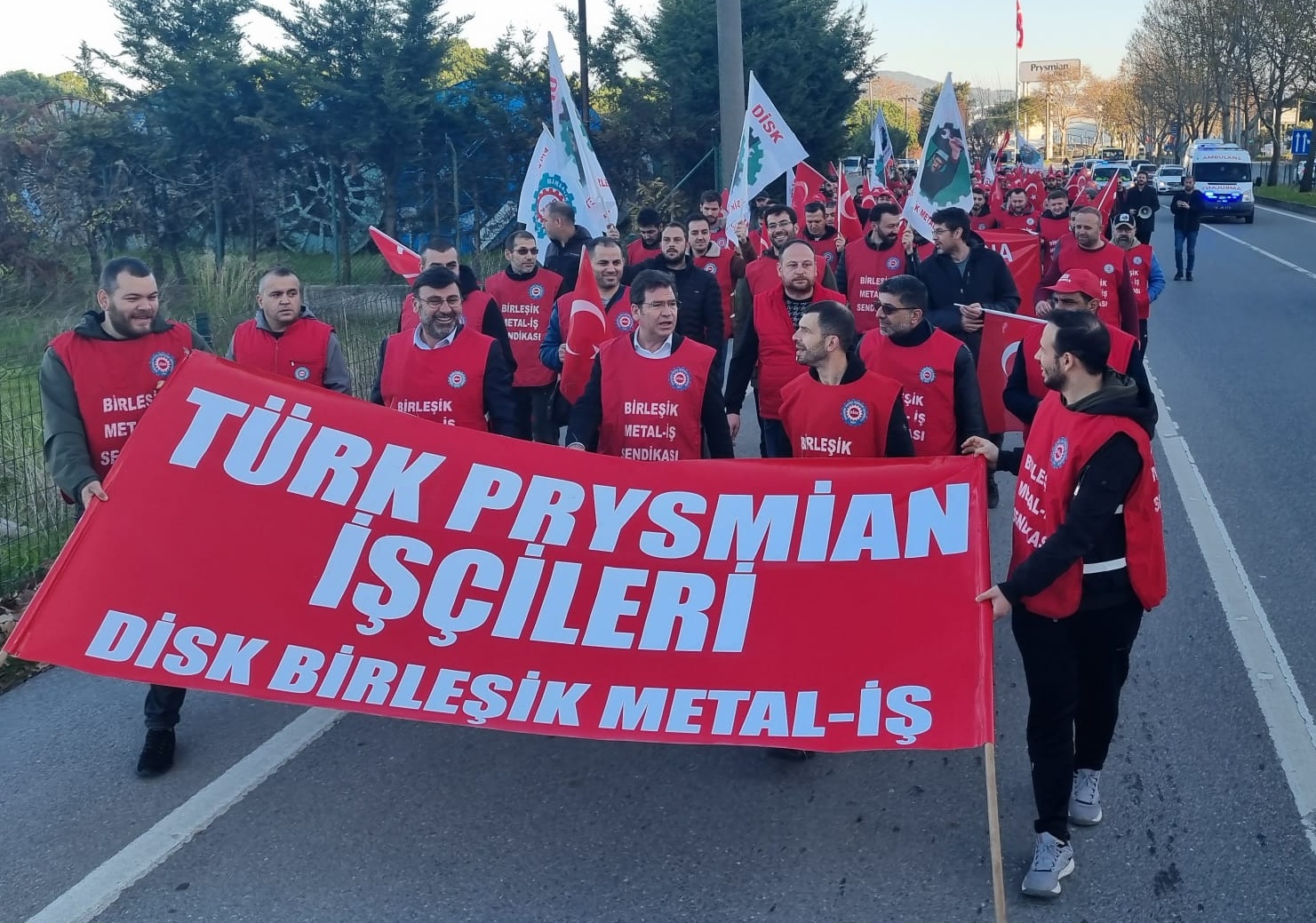 Bursa Mudanya’da Türk Prysmian Kablo ve Sistemleri A.Ş işyeri önünde toplanan metal işçileri, MUDANYA İSKELE MEYDANI’nda kitlesel bir basın açıklaması düzenlendi.