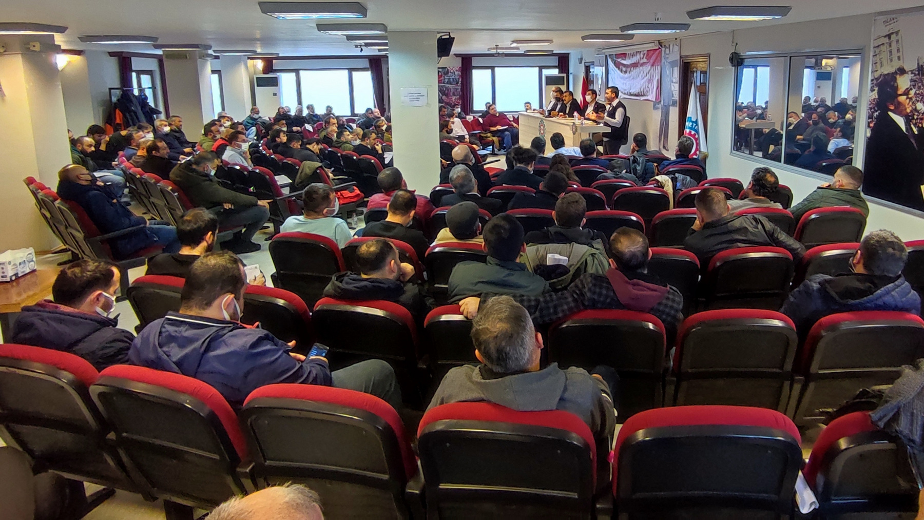 İşyerlerinde, vardiya giriş çıkışlarında sendikamızın bildirisi okunuyor. Grup Toplu İş sözleşmesinde gelinen noktada, MESS'in teklifi protesto ediliyor..