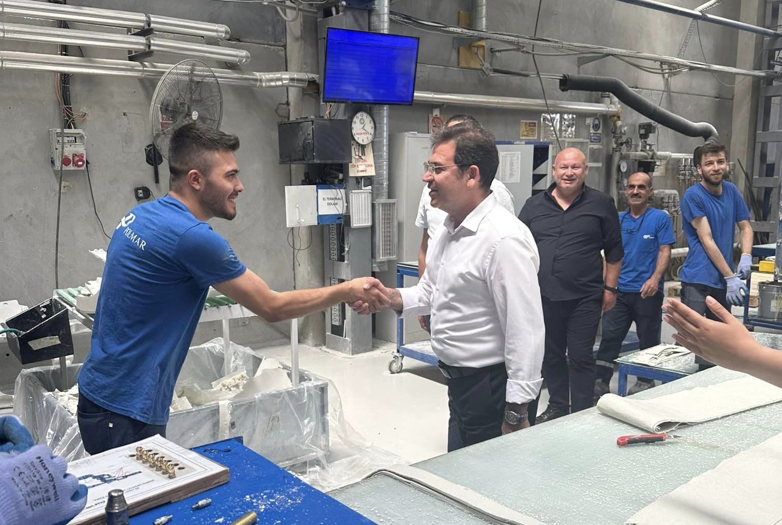 Genel Başkanımız Özkan Atar, Genel Sekreterimiz Ali Çeltek, İzmir Şube yöneticilerimizle birlikte Polkima ve Polmar işyerlerindeki üyelerimizi tezgah başında ziyaret etti.