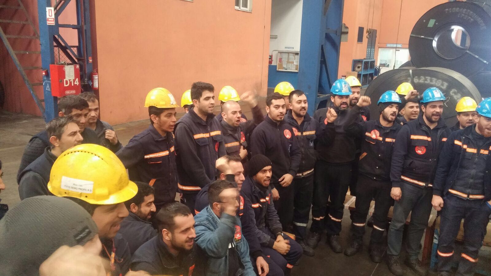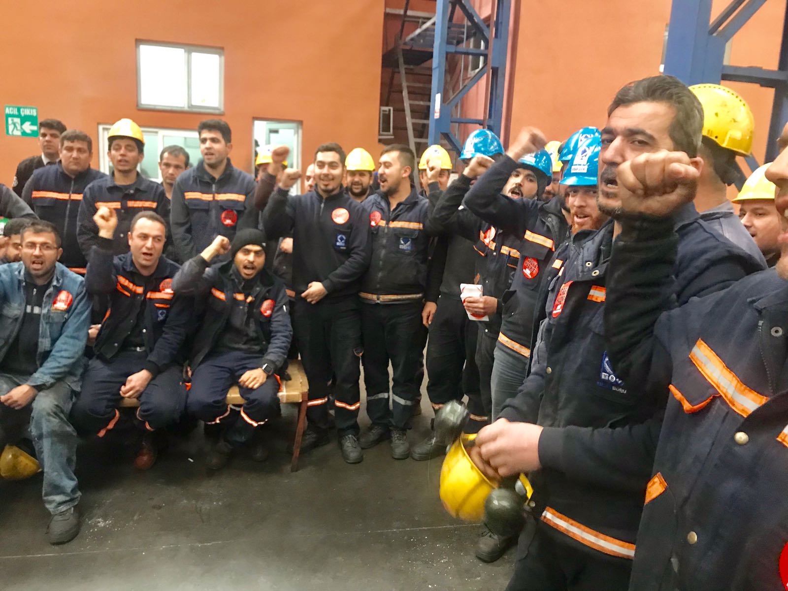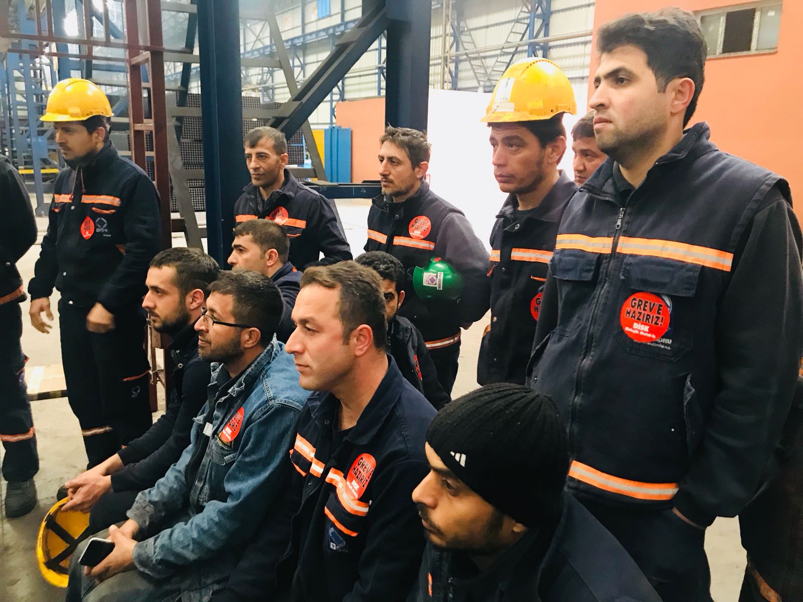 Üretime ara vererek GREVE HAZIRIZ kokartlarıyla sloganlar eşliğinde yöneticilerimizi dinleyen üyelerimiz grev gününü bekliyor.